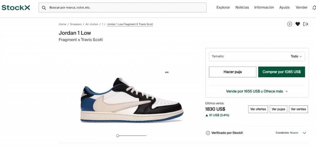 Si venimos por aquí podemos ver una colaboración entre Nike y Travis Scott y esta zapatillas el precio de retail por lo tanto el precio por el cual Nike vendió esta zapatillas fueron 150 dólares esto quiere decir que tú podías comprar esta zapatillas por 150 dólares.