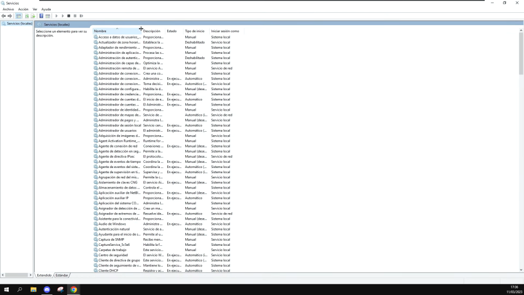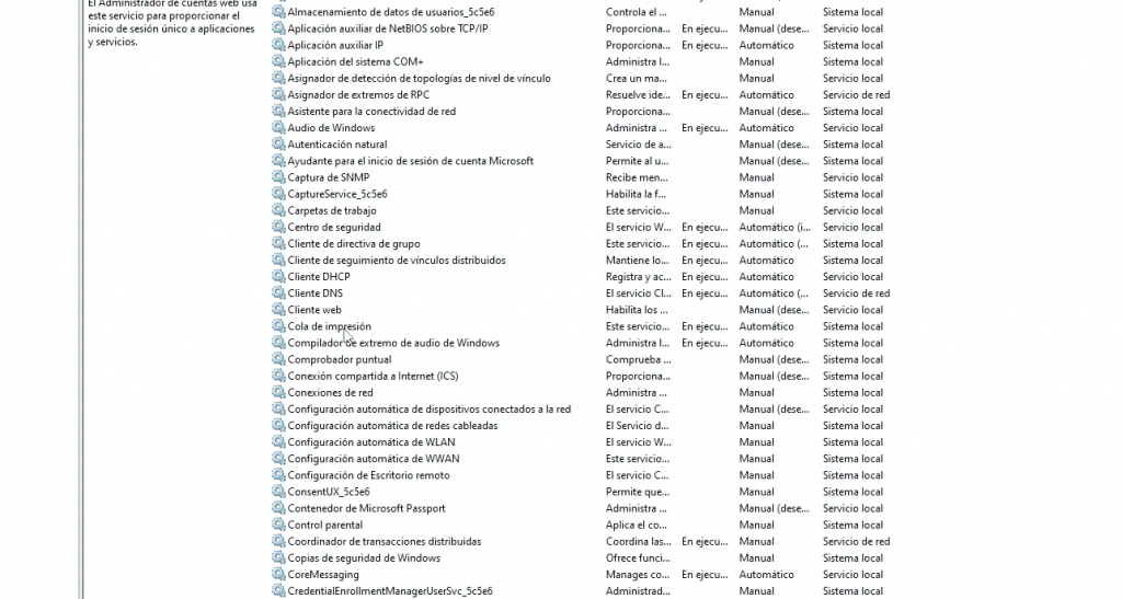 Una vez colcuido el proceso es muy importante que dejen que finalice todo el procedimiento aunque pueda tardar algún tiempo por norma general suele tardar entre 10-15 minutos igual 20 si tienes muchos archivos y también influye que tengas una unidad de estado sólido o un disco duro mecánico si tienes un disco duro mecánico te recomiendo que tengas aún un poco más de paciencia pero los resultados merecerán la pena ahora una vez que completemos este paso lo que tenemos que hacer es cerrar todo y nos vamos a ir a los servicios de Windows, para acceder a los servicios de Windows solamente damos un clic sobre la lupa escribimos servicios y aquí tenemos la opción abrimos vamos a maximizar y ahora tenemos que buscar los siguientes servicios bueno el primer servicio que tenemos que desactivar sería el servicio de administrador de cuentas webs la parte positiva de esto es que todos los servicios están agrupados por orden alfabético así que vamos a buscar y aquí lo tendríamos administrador de cuentas webs damos un clic derecho propiedades.