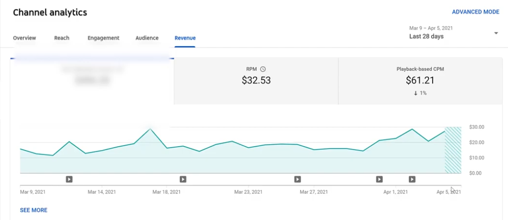 El rpm que es el rpm es lo que te queda neto vale es lo que generas por cada mil visitas, es decir por cada mil visitas el canal de la foto ahora mismo está generando Casi 11 dólares vale es cpm bastante elevado.